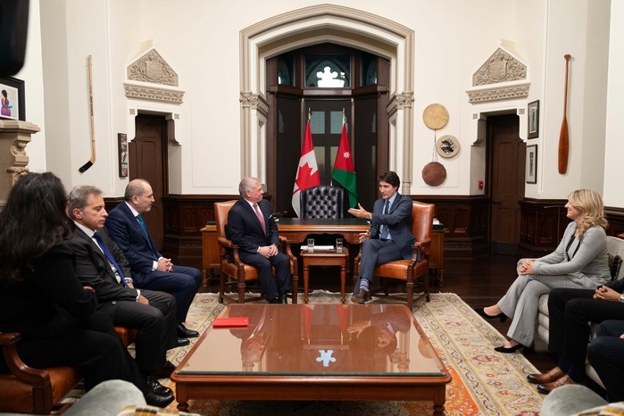 [프레스뉴스] 채정병 특파원=14일(현지시간) 가자전쟁 휴전 노력을 위해 캐나다를 방문한 압둘라 2세 요르단 국왕이 쥐스탱 트뤼도 캐나다 총리와 양자회담을 하고 있다. (사진=요르단 왕실 제공)
