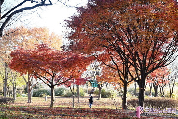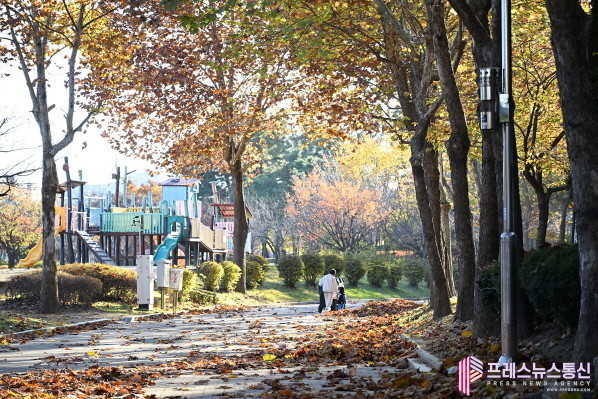 [프레스뉴스] 장현준 기자= 붉은빛과 노란빛으로 곱게 물든 산책로에서 운동을 즐기거나 벤치에 앉아 여유를 만끽하는 시민들의 표정이 가을 햇살에 화사하게 빛난다. 공원 진입로부터 이어지는 가로수길에는 포근하게 내려앉은 낙엽 사이로 시민들이 발걸음을 멈추며 늦가을 정취를 만끽한다.