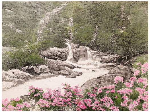 ▲곡성군 갤러리 107 묵향림 한국화 단체전 개최-장동권 작, 계곡의 봄 50호 (사진제공=곡성군) |