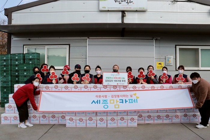 [프레스뉴스] 임규모 기자= 세종맘카페(대표 정연숙)가 지난 16일 장군면 소재 한 농산물가공업체에서 ‘사랑의 김장김치 나눔’봉사활동을 전개했다.