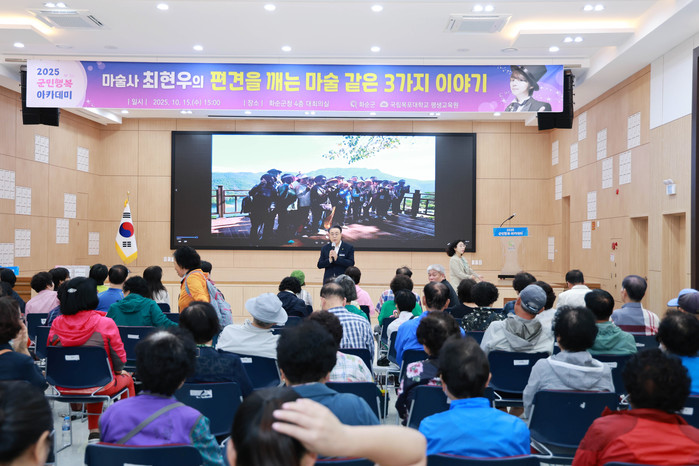 한편, 군민행복 아카데미는 화순군이 매달 운영하는 명사 초청 강연 프로그램으로 군민 누구나 별도의 신청 없이 자유롭게 참여할 수 있다.