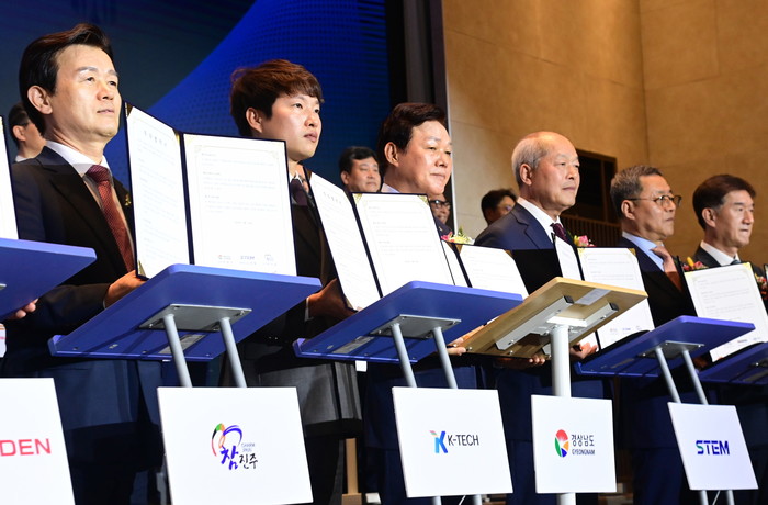 | ▲진주시가 케이테크㈜, ㈜스템과 대규모 투자협약을 체결했다.(사진=진주시) |