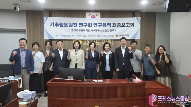 [프레스뉴스] 류현주 기자= 경기도의회 의원연구단체 ‘기후행동 실천 연구회’(회장 이경혜 의원, 더불어민주당, 고양4, 기획재정위원회 부위원장)는 지난 7월 23일, 경기도의회 의회운영위원회 회의실에서 「경기도 공동체 기반 기후행동 실천 방안」 정책연구용역 최종보고회를 개최했다.