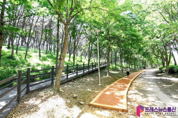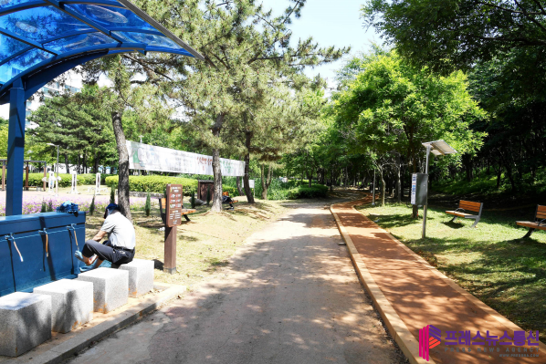 [프레스뉴스] 장현준 기자= 푸른 녹음이 짙은 숲의 풍경이 더없이 청량한 오월, 도시에서 풍성한 자연을 만끽할 수 있는 시흥시 곰솔누리숲은 몸과 마음을 치유하는 산책길로 시민들에게 인기다.