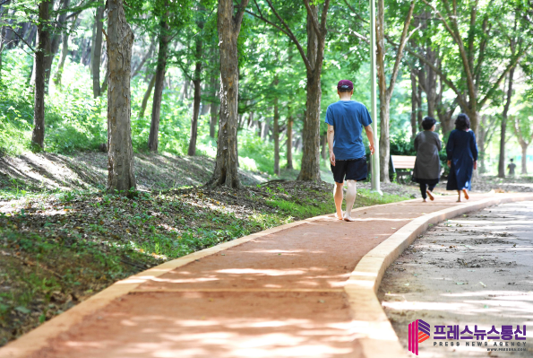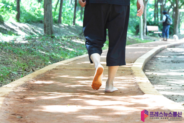| ▲맨발 걷기로 힐링하는 ‘곰솔누리숲 황톳길’(사진=시흥시) |