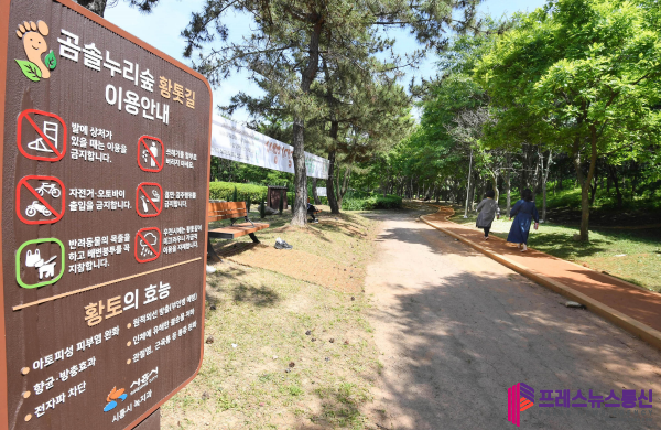 맨발 걷기 열풍에 힘입어 시흥시는 지난해 11월부터 올해 3월까지 공사를 진행해 곰솔누리숲 7블럭(정왕동 1969번지)에 황톳길을 조성했다. 황톳길 코스는 총 250미터로 구성돼 있으며, 세족 시설과 벤치 등 편의시설도 함께 설치돼 있어 더욱 편리하다.