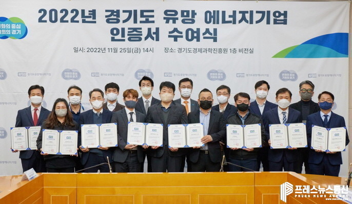 [프레스뉴스] 장현준 기자= 경기도는 성장 잠재력이 있는 도내 에너지 중소·중견기업 15개 사를 ‘2022년 경기도 유망 에너지기업’으로 선정하고 25일 인증서 수여식을 개최했다.