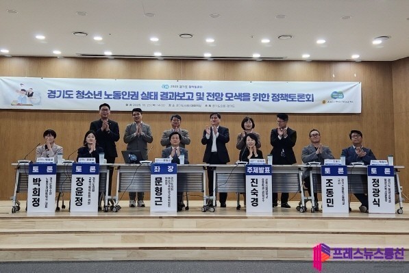 [프레스뉴스] 류현주 기자= 경기도의회 여성가족평생교육위원회 문형근 위원장(더불어민주당, 안양3)이 좌장을 맡은 「경기도 청소년 노동인권 실태 결과보고 및 전망 모색」을 위한 정책토론회가 10월 23일(목) 경기도의회 대회의실에서 개최됐다. 본 토론회는 경기도와 경기도의회가 공동으로 주최하는 ‘2025 경기도 정책토론회’의 일환으로 개최되었다.