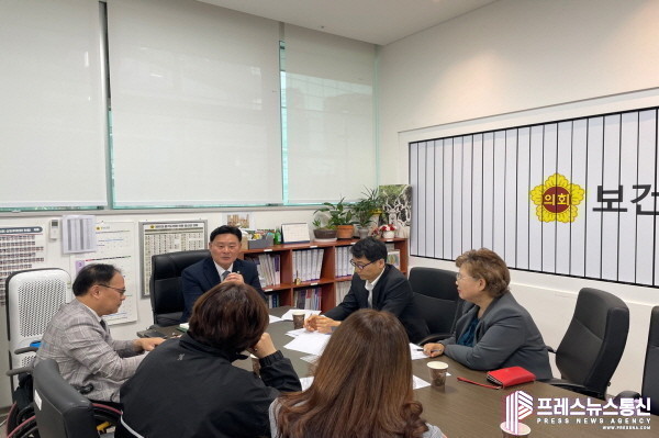 최종현 경기도의회 보건복지위원장(더불어민주당, 수원7)은 25일 경기도의회 보건복지위원장실에서 박재용 경기도의원(더불어민주당, 비례), 경기도장애인공동생활가정협회 황유신 회장을 비롯한 도내 장애인공동생활가정 시설장들과 장애인 복지향상을 위한 현안 정담회를 가졌다.