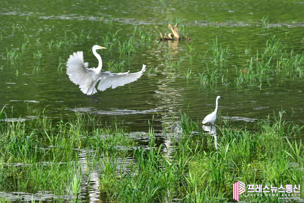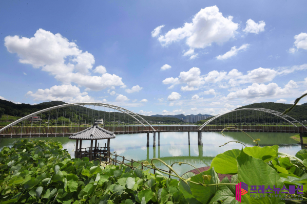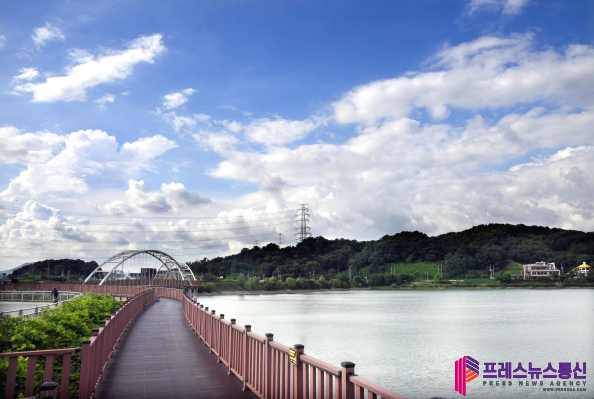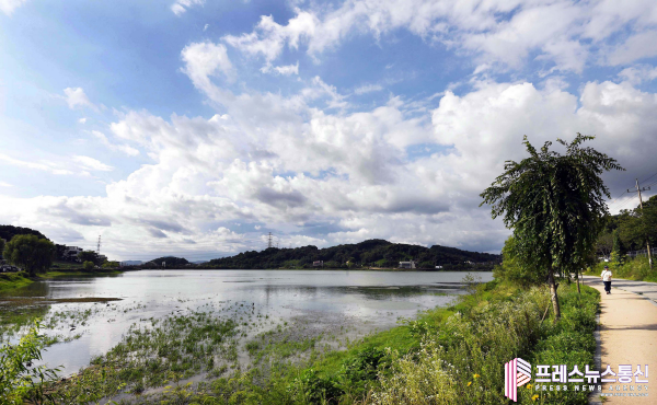 [프레스뉴스] 장현준 기자= 한바탕 세차게 내린 장맛비가 그친 다음 날, 맑게 갠 새파란 하늘에 둥둥 떠다니는 뭉게구름이 물왕호수와 어우러져 한 폭의 수채화를 완성하고 있다.