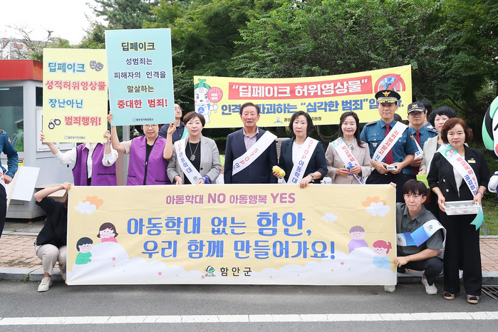 | ▲함안군은 함안교육지원청, 함안경찰서 등 관내 유관기관과 함께 24일 학교폭력 및 아동학대 예방 합동 캠페인을 실시했다 (사진=함안군) |