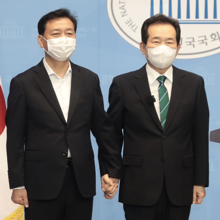 | ▲ 정세균 전 총리와 이광재 의원의 후보 단일화 발표(정세균 전 국무총리실 제공) |
