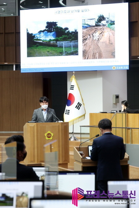 이 날 질문에서 조성환 의원은 아름다운 자연환경을 파괴하고 주민의 안전을 위협하는 도 내 난개발 문제를 언급하면서, “이러한 난개발의 원인 중 하나로 지목되고 있는 불법영업행위에 대한 사후조치로 경기도에서는 지난 2018년에 무등록 등 불법행위를 한 업체들을 적발해 고발하는 등 강력한 조치를 했다”고 말하며 “그럼에도 파주 소재 무등록 측량업체가 지난 2015년부터 2022년까지 무려 189건의 개발행위에 대한 민원업무를 대행해왔다”면서 향후 이런 일이 재발되지 않도록 경기도 차원의 강력한 관리·감독을 요청했다.