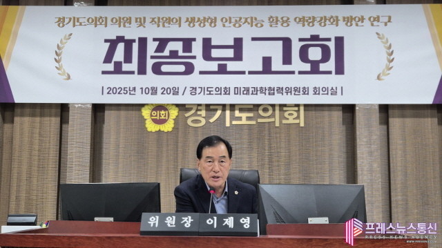 [프레스뉴스] 류현주 기자= 경기도의회 미래과학협력위원회(위원장 이제영, 국민의힘, 성남8)는 10월 20일(월), 도의회 위원회 회의실에서 『경기도의회 의원 및 직원의 생성형 인공지능 활용 역량강화 방안 연구』에 대한 최종보고회를 개최했다.