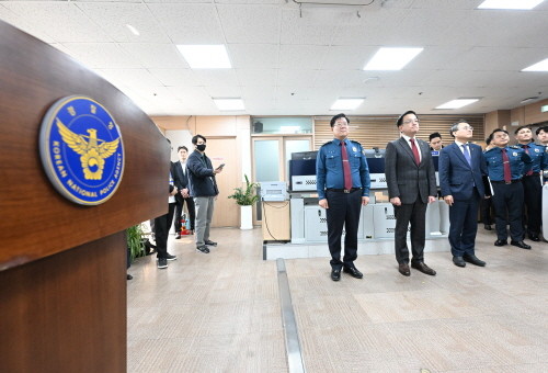 ▲최상목 대통령 권한대행 부총리 겸 기획재정부 장관이 6일 서울 서대문구 경찰청 112 치안종합상황실을 방문해 상황실 근무자로부터 대응 상황에 대한 설명을 듣고 있다. (사진= 뉴스1) |