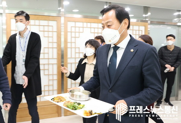 [프레스뉴스] 김대일 기자= 장현국 경기도의회 의장(더민주, 수원7)이 “새로운 청사에서 우리가 만들 새로운 의회, 도민과 적극적으로 소통하는 경기도의회를 위해 힘차게 시작해봅시다. 경기도의회 식구들 모두 식사 맛있게 하세요!”라며 구내식당 운영개시에 따른 소회를 전했다.