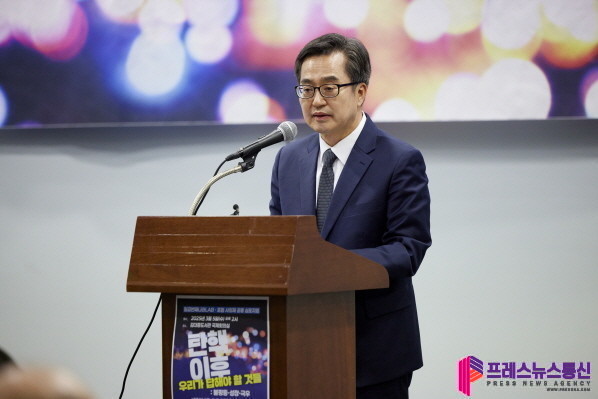 김 지사는 “정권교체, 그 이상의 교체, 즉 ‘삶의 교체’를 이뤄내야 한다”면서 “앞으로 3년이 향후 30년을 좌우한다. 3년 안에 신속하고 과감한 빅딜로, 대한민국 대전환의 역사를 만들어 가자”고 역설했다.