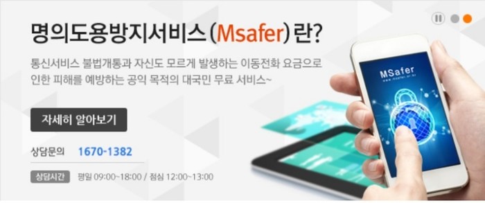 ▲명의도용방지서비스(Msafer) 누리집 화면 중. |