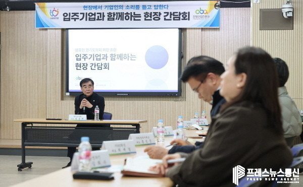 [프레스뉴스] 김대일 기자= 염종현 경기도의회 의장이 29일 안양산업진흥원에서 열린 현장 정담회에서 중소기업 및 벤처기업 관계자들과 소통의 시간을 가졌다.