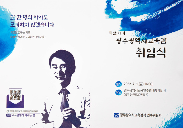 [광주=프레스뉴스] 강래성 기자= 직선 4기 이정선 광주시교육감 취임식은 공감과 소통을 테마로 1시간여 동안 문화공연이 어우러진 토크콘서트 형식으로 진행된다.
