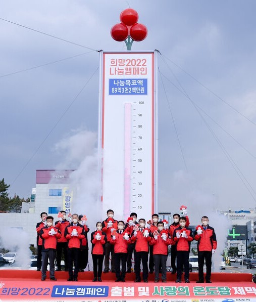 한편 여수시청 앞 1호광장 로타리에 설치된 사랑의 온도탑은 희망2022나눔캠페인 기간 동안 동부권 및 여수 지역의 나눔 참여를 활성화 하고, 이웃사랑 성금모금 현황을 한눈에 확인할 수 있도록 제작된 설치물이다.