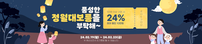 이번 이벤트에서는 곡성몰이 정월대보름을 기념해 찹쌀, 잡곡, 땅콩, 건나물, 떡 등 정월대보름에 필수적인 상품들을 24% 할인된 가격으로 판매하는 특별전을 마련했다. 이 행사는 고객들이 정월대보름에 꼭 필요한 품목을 할인된 가격에 믿고 살 수 있는 기회다. 기간은 2월 19일부터 2월 23일까지 진행될 예정이며 예산이 소진될 경우 이벤트는 예정보다 일찍 종료될 수 있다.