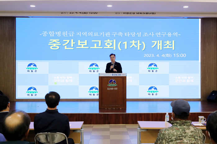 [프레스뉴스] 정재훈 기자= 하동군은 지난 4일 군청 대회의실에서 민선 8기 군정 핵심인 종합병원급 지역의료기관 구축을 위한 타당성 조사 연구용역 중간보고회(1차)를 개최했다고 5일 밝혔다.