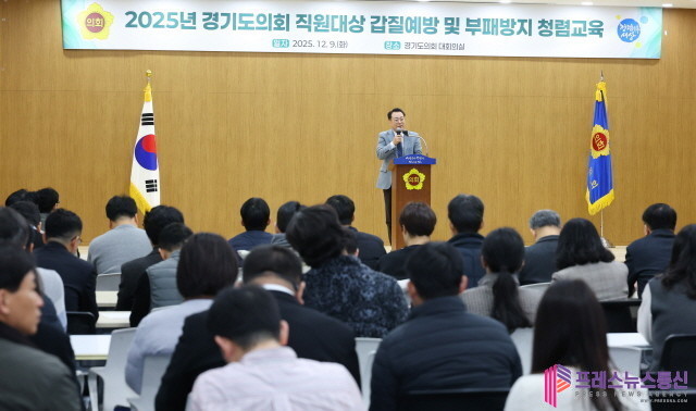 [프레스뉴스] 강보선 기자= 경기도의회는 9일(화) 오전 의회 대회의실에서 전 직원을 대상으로 ‘갑질예방 및 부패방지 청렴교육’을 실시했다.