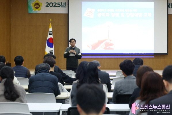 이어 “이번 기회를 통해 공직자가 반드시 숙지해야 할 핵심 규정을 다시 한번 정확히 이해하고, 우리 조직의 청렴 수준을 한 단계 더 높이는 계기가 되길 바란다”며 “앞으로 갑질과 비위가 발생할 수 있는 관행을 바로잡고, 존중과 소통이 살아있는 건강한 조직문화를 만들기 위해 최선을 다하겠다”고 밝혔다.