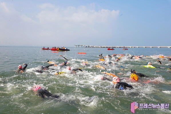 ▲지난해 9월 거북섬에서 열린 제 13회 전국생활체육 장거리 핀수영대회(사진=시흥시) |