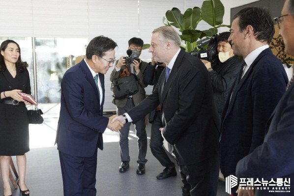 [프레스뉴스] 장현준 기자= 김동연 경기도지사가 미래먹거리 발굴을 위한 선제적 조치로 북미.유럽지역 주한상공회의소 대표들과 만나 “경기도는 규제 완화와 혁신생태계를 만드는 데 최선을 다하고 있으며 기업들이 아주 편하게 활동할 수 있도록 하겠다”며 경제 역동성을 살리기 위한 경기도의 노력과 투자하기 좋은 경기도의 이점을 적극 피력했다.