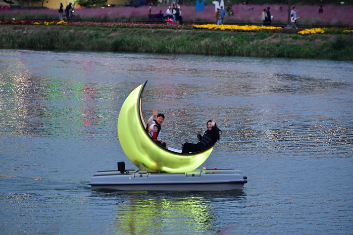[전남=프레스뉴스] 박정철 기자=장성군 황룡강 가을꽃축제에는 밤에도 즐길거리가 많다. 특히 오후 6시 이후로 문화대교에 가면 달 모양 ‘문보트’와 ‘유에프오(UFO)보트’를 탈 수 있다. ‘문보트’는 최대 3인까지 이용 가능하고 이용료는 2만 원이다. ‘유에프오보트’는 최대 5인 탑승에 3만 원이다.