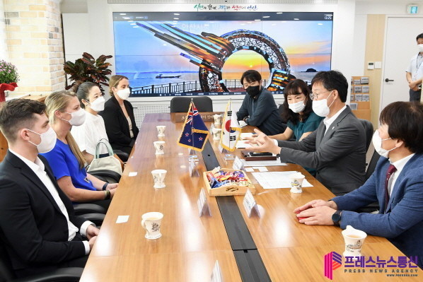 [프레스뉴스] 장현준 기자= 안산시(시장 이민근)는 19일 안산시청에서 해외 우호협력도시인 뉴질랜드 타우랑가시 청소년·교육 대표단을 접견하고 양 도시 간 협력 방안을 논의했다.