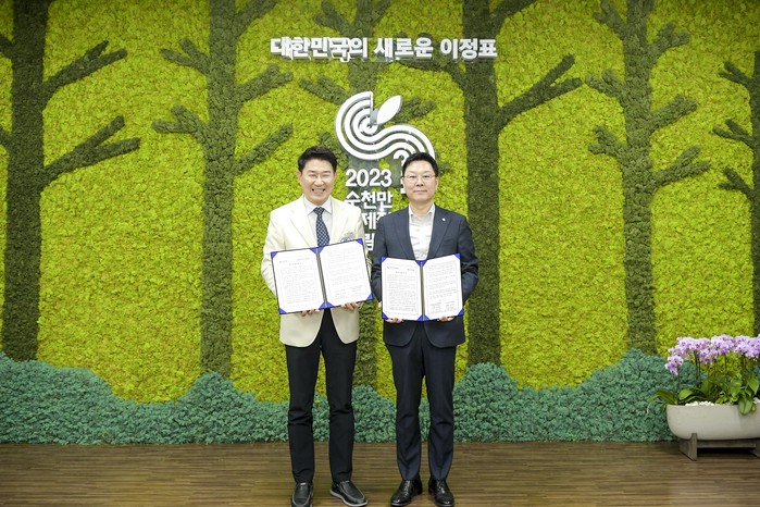 업무협약은 순천만국제습지센터에서 조직위 노관규 이사장(순천시장)과 신한은행 임수한 디지털전략사업그룹장이 참석한 가운데 진행됐다.
