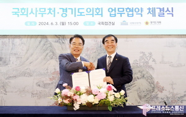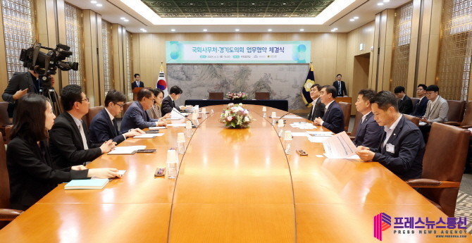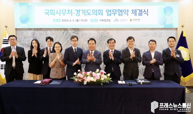 [프레스뉴스] 류현주 기자= 경기도의회(의장 염종현)가 3일 국회사무처(사무총장 백재현)와 의정연수 분야에서 상호협력을 강화하기 위한 협약을 체결했다.