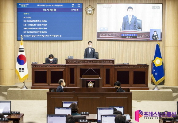 [프레스뉴스] 김대일 기자= 안산시의회(의장 송바우나)가 21일 열린 제282회 임시회 제1차 본회의를 시작으로 제282회 임시회 의사일정에 들어갔다.