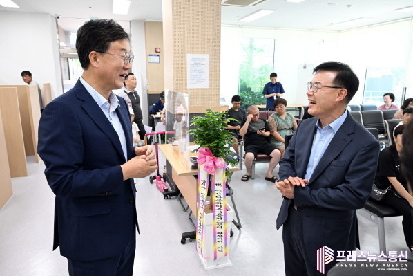 [프레스뉴스] 장현준 기자= 안산시(시장 이민근)는 이민근 안산시장이 1일 외국인주민지원본부를 방문해 다문화이주민⁺센터 확장 이전 축하와 함께 직원들을 격려했다고 밝혔다. 아울러, 외국인들이 타지에서 처음 적응하는 데 큰 도움을 주고 있는 만큼 원스톱 행정서비스를 통해 외국인 정책을 선도해달라고 주문했다.