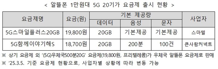 과학기술정보통신부는 지난 1월 15일 '알뜰폰 경쟁력 강화 방안'을 발표한 이후 알뜰폰 도매대가의 대폭 인하에 따라 시장에서 1만 원대 5G 20(GB)기가 요금제가 새롭게 출시되고 있다고 4일 전했다.