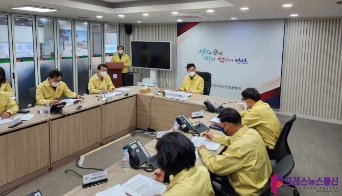 | ▲ 이민근 안산시장이 2일 시청 재난상황실에서 긴급재난안전대책회의를 주재하고 있다.(사진=안산시) |