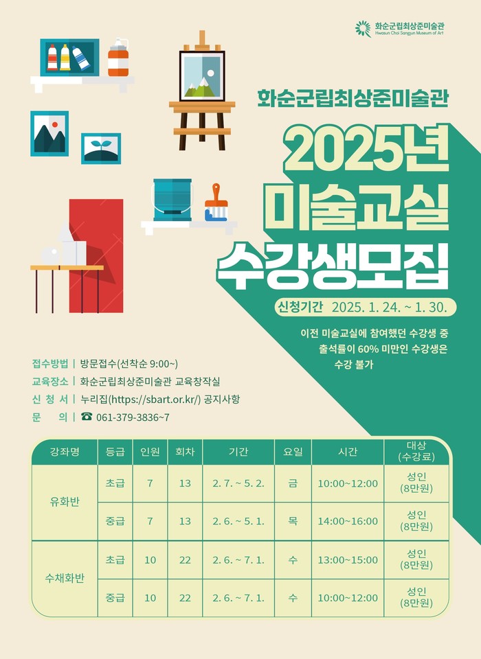 | ▲ 2025 미술교실 수강생 모집 안내 포스터(사진제공=화순군) |