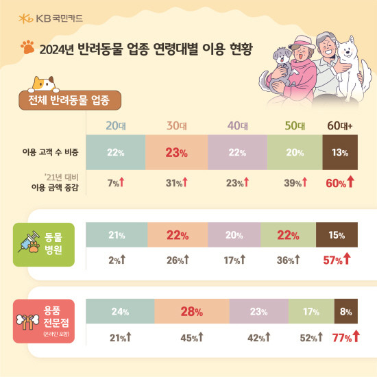 ▲2024년 반려동물 업종 연령대별 이용 현황 인포그래픽(사진=KB국민카드) |