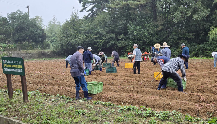 ▲담양군농촌지도자회, 실증시험포 고구마 수확 및 나눔 활동 전개 (사진제공=담양군) |