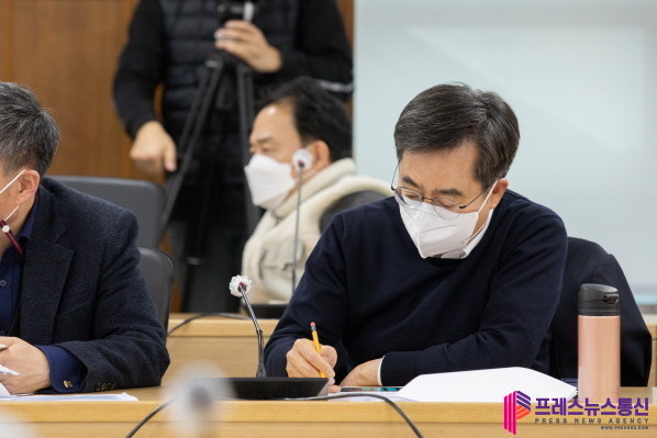 | ▲ 21일 오후 경기도청 4층 다목적회의실에서 열린 기회경기 혁신포럼 ‘경바시(경기도를 바꾸는 시간)’에서 김동연 경기도지사가 발표를 경청하고 있다.(사진=경기도) |