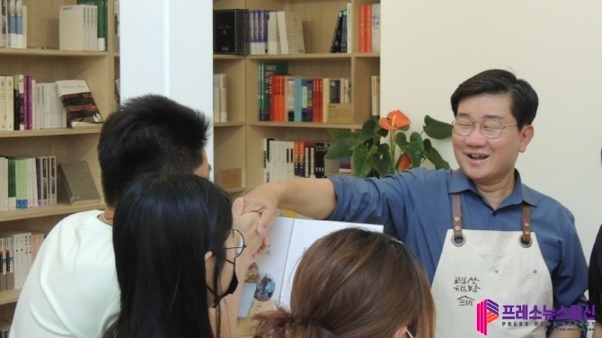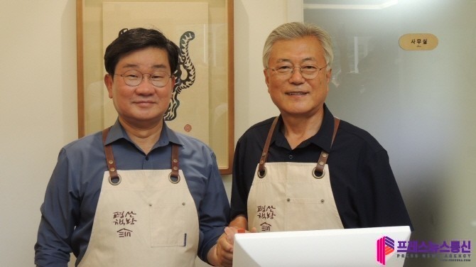 | ▲ 전해철 의원이 지난 17일 경남 김해 봉하마을을 찾아 문재인 전 대통령과 책방지기 활동 모습(사진=전해철 의원실) |