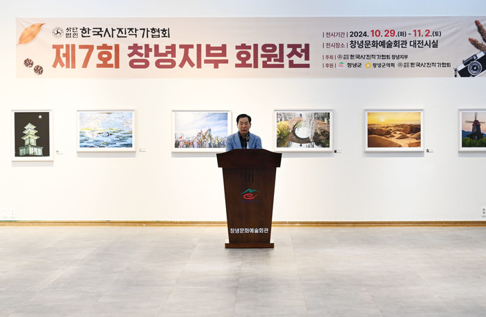| ▲(사)한국사진작가협회 창녕군지부(지부장 김영덕)는 10월 29일부터 11월 2일까지 5일간 창녕문화예술회관 전시실에서 ‘제7회 한국사진작가협회 창녕지부 회원전’을 개최한다.(성낙인 창녕군수 축사)사진=창녕군 |