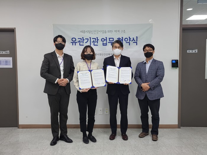 ▲세종시정신건강복지센터(센터장 이미지)가 지난 14일 정신재활시설 ‘한걸음’과 정신장애인 취업 활동을 돕기 위한 업무협약(MOU)을 체결했다.(사진=세종시) |