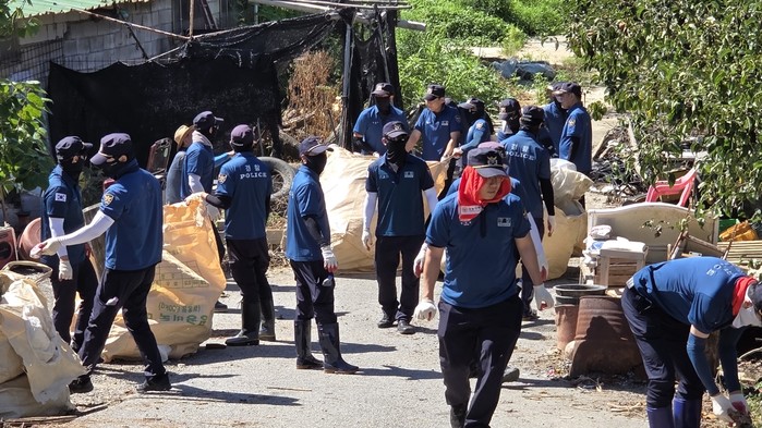 고령의 농민이 손을 놓고 있던 가운데, 경찰관들은 이틀간 장화를 신고 진흙탕에 들어가 토사를 치우고 가재도구를 정리했으며 하루 종일 구슬땀을 흘렸다. 젖은 농작물 가운데 일부는 다시 살려내고 사용할 수 있는 농자재를 모아 정리했다.