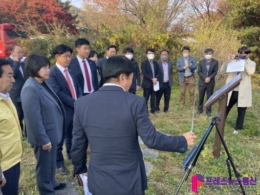 이날 오전 포천시 가산면 가산도서관 세미나실에서 정책협약식을 맺은데 이어 지역 현안 관련하여 군내면 유교리와 내촌면 마명리를 현장 방문하였다.