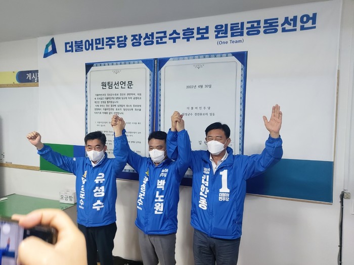 또한, 공천 결과 발표에 앞서 오전 9시 30분경 더불어민주당 장성지역위원회에서 세 후보가 만나 원팀 선언식을 진행하였다.