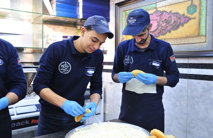 [프레스뉴스] 채정병 특파원= 12일(현지시간) 요르단 암만의 한 과자점에서 점원들이 라마단 대표 디저트인 까따이프를 만들고 있다. 중동의 전통 후식인 까따이프는 만두피 만한 크기의 팬케이크에 견과류나 치즈 등을 넣고 튀긴 후 시럽을 뿌려서 먹는다.